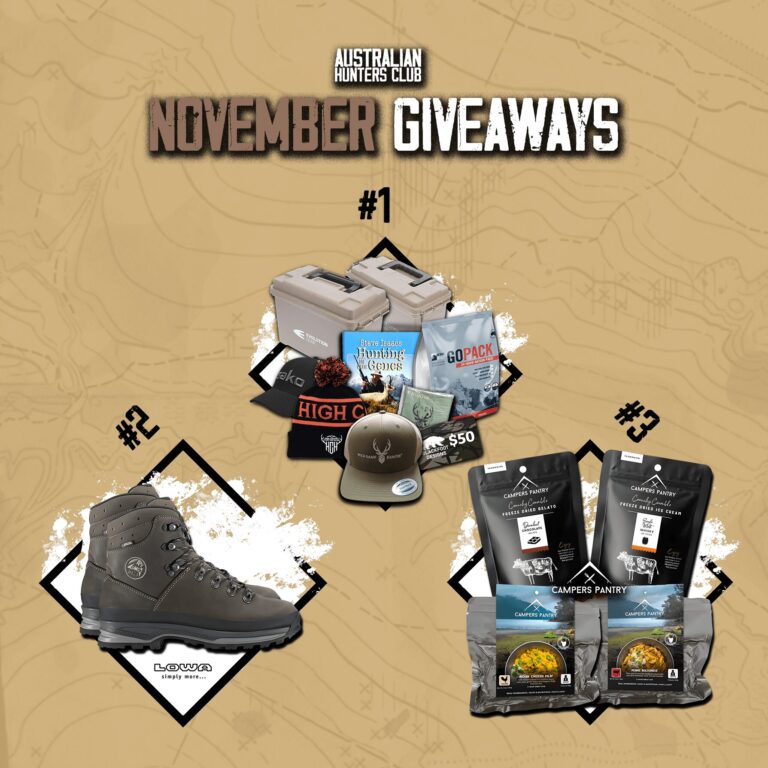 Go in the draw each month to win professional hunting experiences as well as hunting products every single month. Hunts take place all over Australia and can be transferred and gifted to a non members as well! You can checkout this months giveaways below.